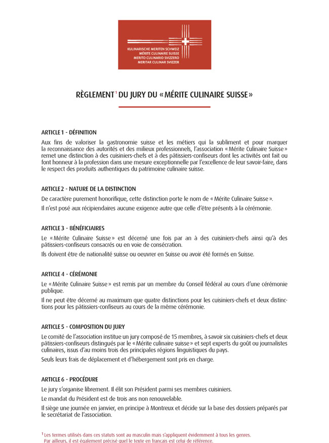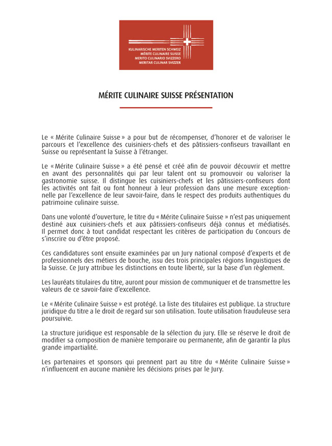 MÉRITE CULINAIRE D'HONNEUR